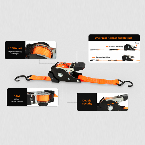 1 Inch 25mm 680kg Poliéster GS TUV Auto Retrátil Automático Auto Retrátil Ratchet Tie Down Strap